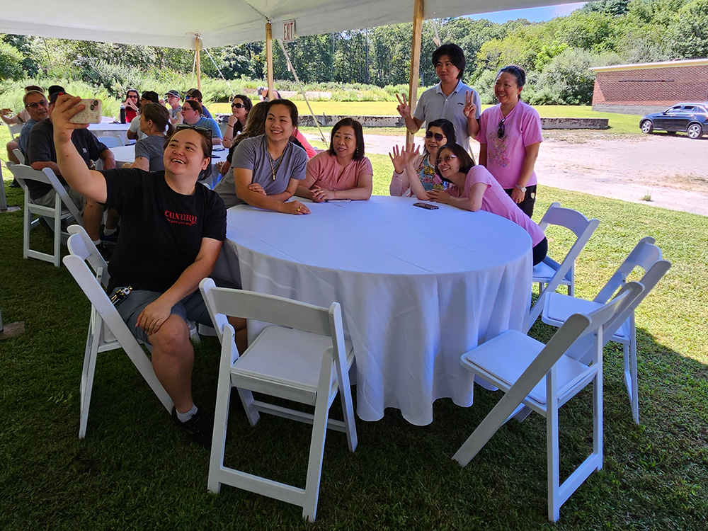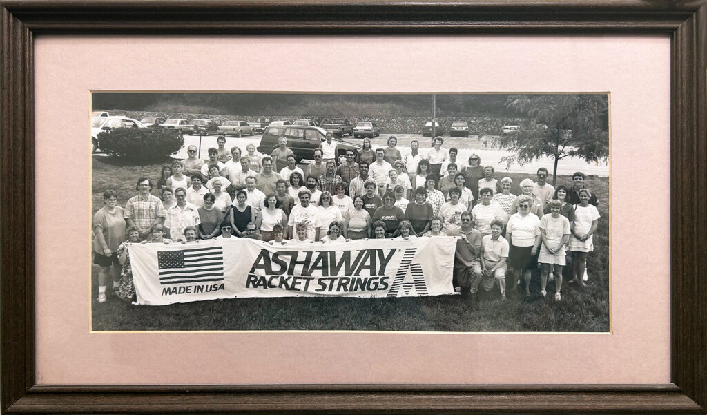 Equipe de produção de encordoamentos da Ashaway, por volta de 1993.