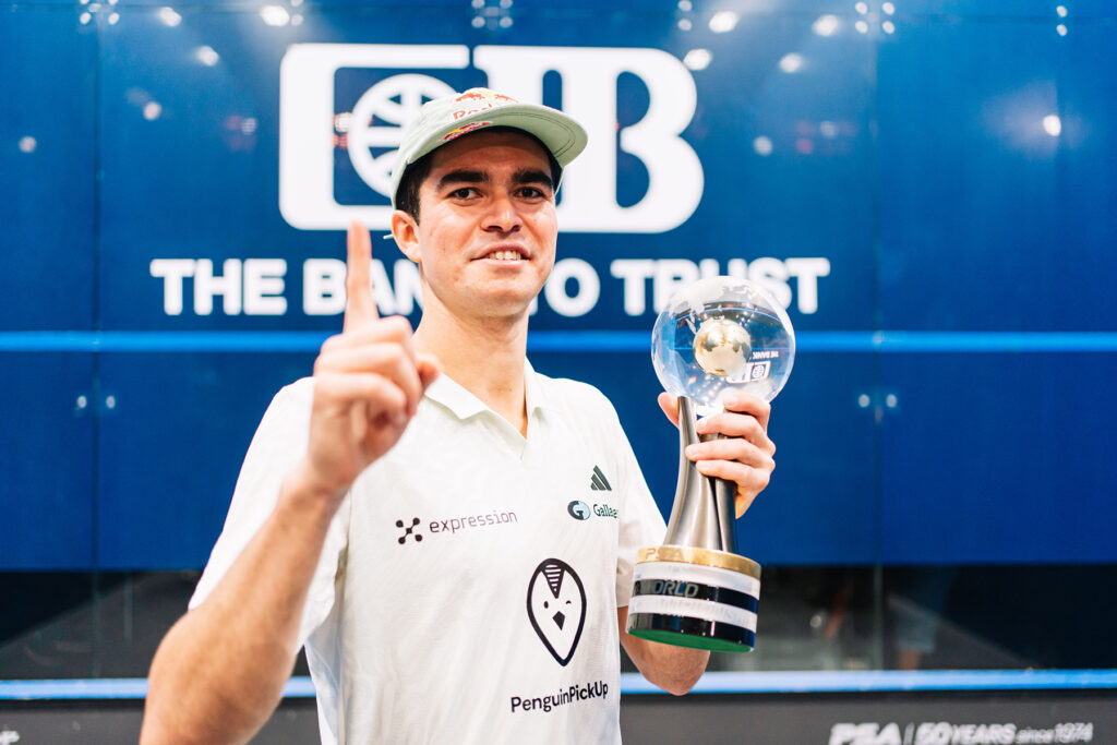 O Campeão Mundial de Squash de 2024, Diego Elias (primeiro sul-americano a conquistar o título), utiliza o encordoamento UltraNick® 18 da Ashaway em sua raquete.