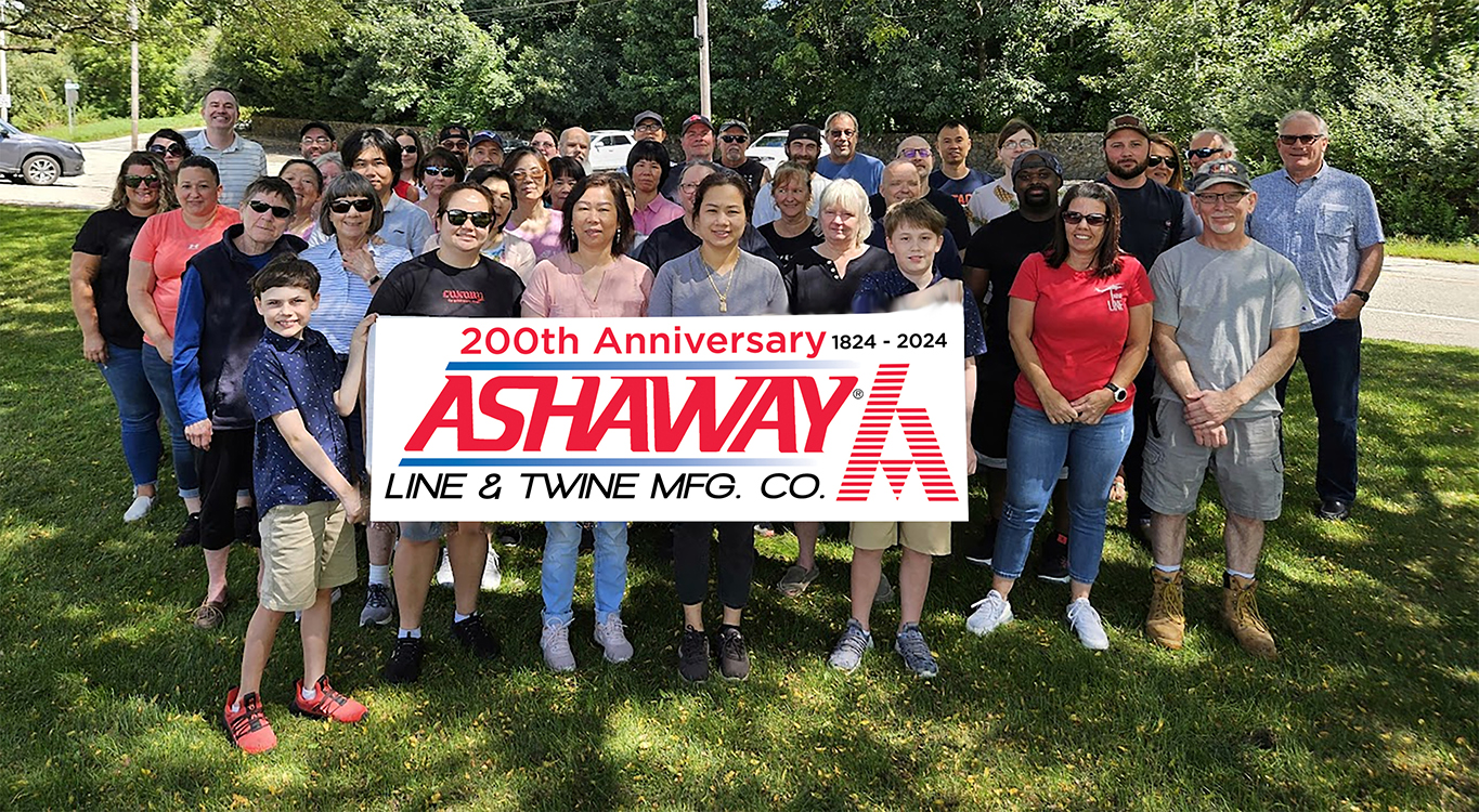 Em 1939, a Ashaway produziu a primeira linha de pesca esportiva sintética, utilizando a fibra revolucionária inventada pela DuPont, chamada Nylon. Durante 30 anos, a Ashaway foi reconhecida como a maior fabricante de linhas de pesca do mundo, com produtos renomados internacionalmente.